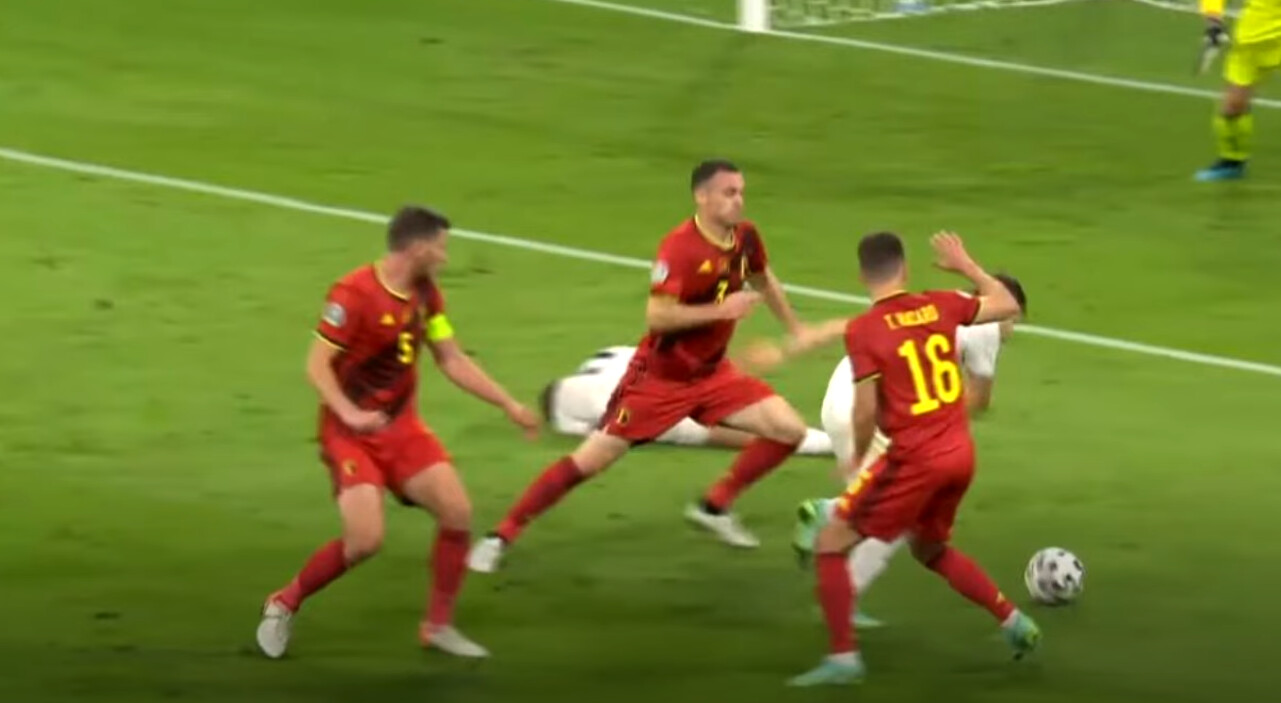 Bij die goal dus bij onderstaande foto is dat inderdaad erg kinderlijk verdedigd. Voor 3 spelers met zoveel ervaring, Hazard is dan wel een flankaanvaller die op de linkshalf wordt gebruikt mag dat niet gebeuren. Maar het ergste aan die goal was eigenlijk hoe dat ze in die situatie terecht kwamen. Een seconde daarvoor wou Vertonghen uitvoetballen en speelde hij die rechtstreeks in de voeten van een Italiaan op 18 meter van de eigen goal. En daarna dan zoals op de foto erg slecht verdedigen. Eigenlijk net hetzelfde als de goal die we tegen kregen tegen Denemarken. Slechte inspeelpas van Denayer voor de eigen 16 en vervolgens verkeerd uitstappen.