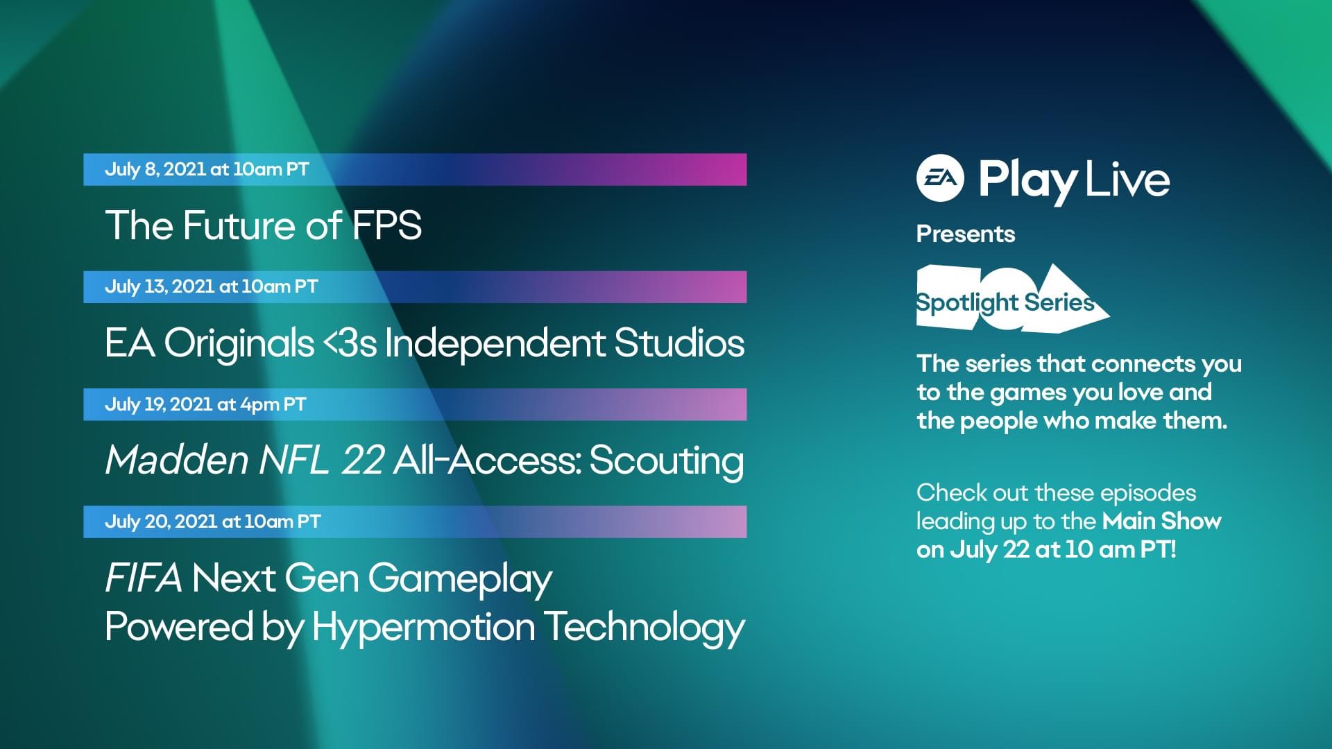 (Morgen) 20 juli komt er tijdens EA Play Live Spotlight meer over de gameplay van FIFA 22 & 22 juli is EA Play Live waar normaal gesproken ook de eerste beelden van andere game onderdelen zijn!