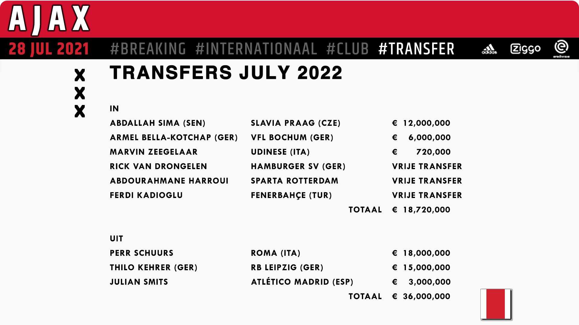 Hele mooie transfers gedaan voor in de breedte! Benieuwd of er nog iemand komt of vertrekt…