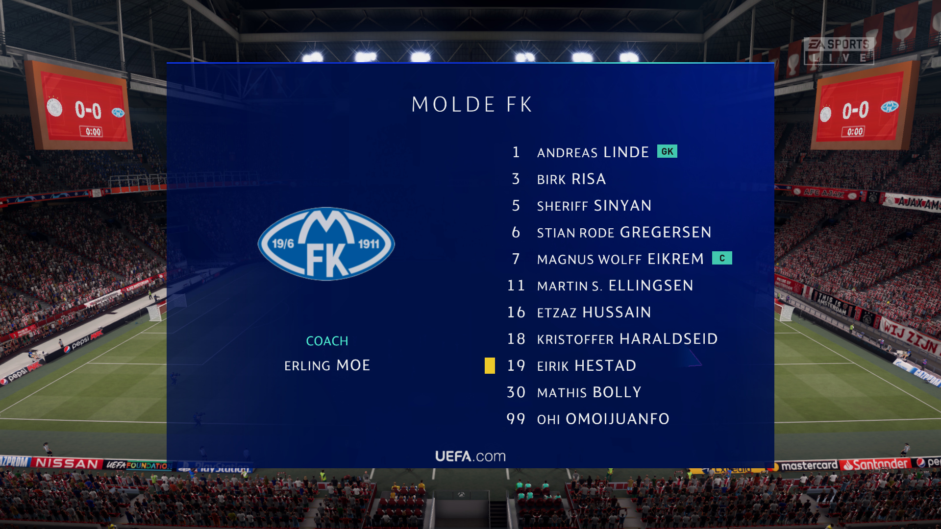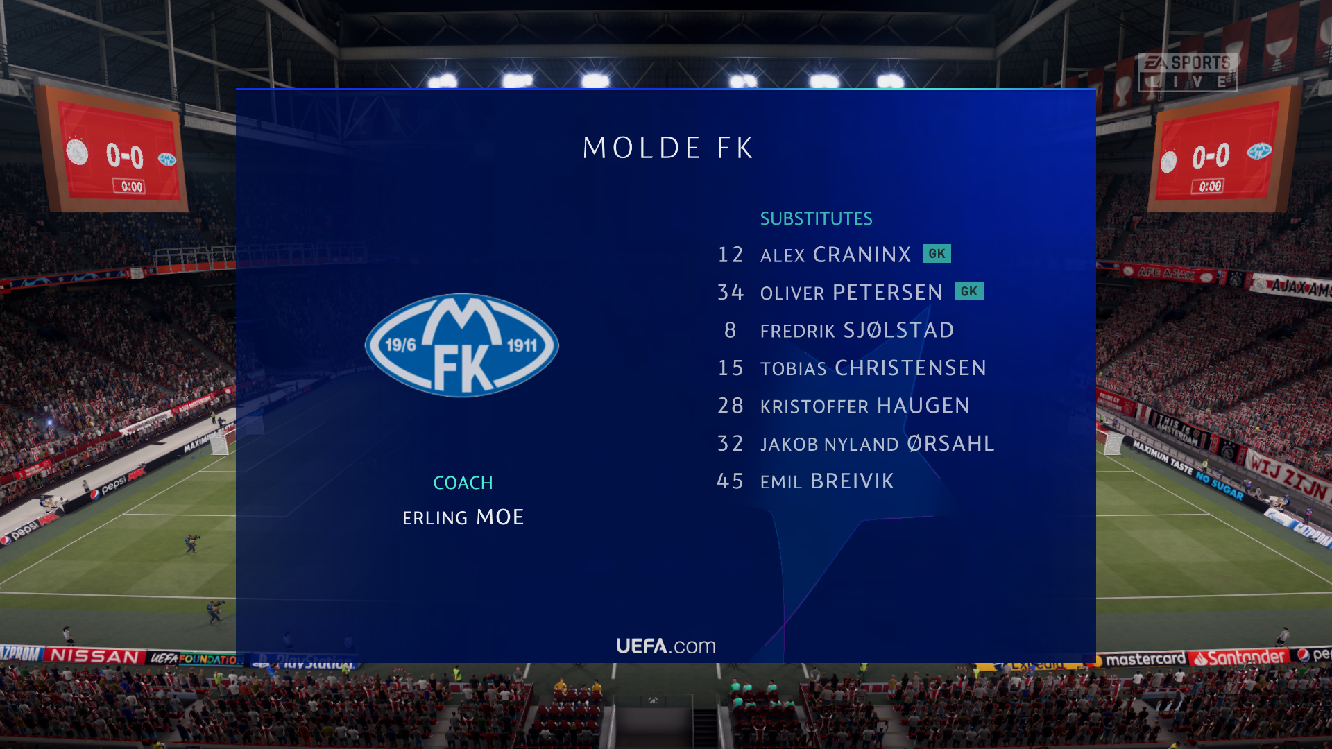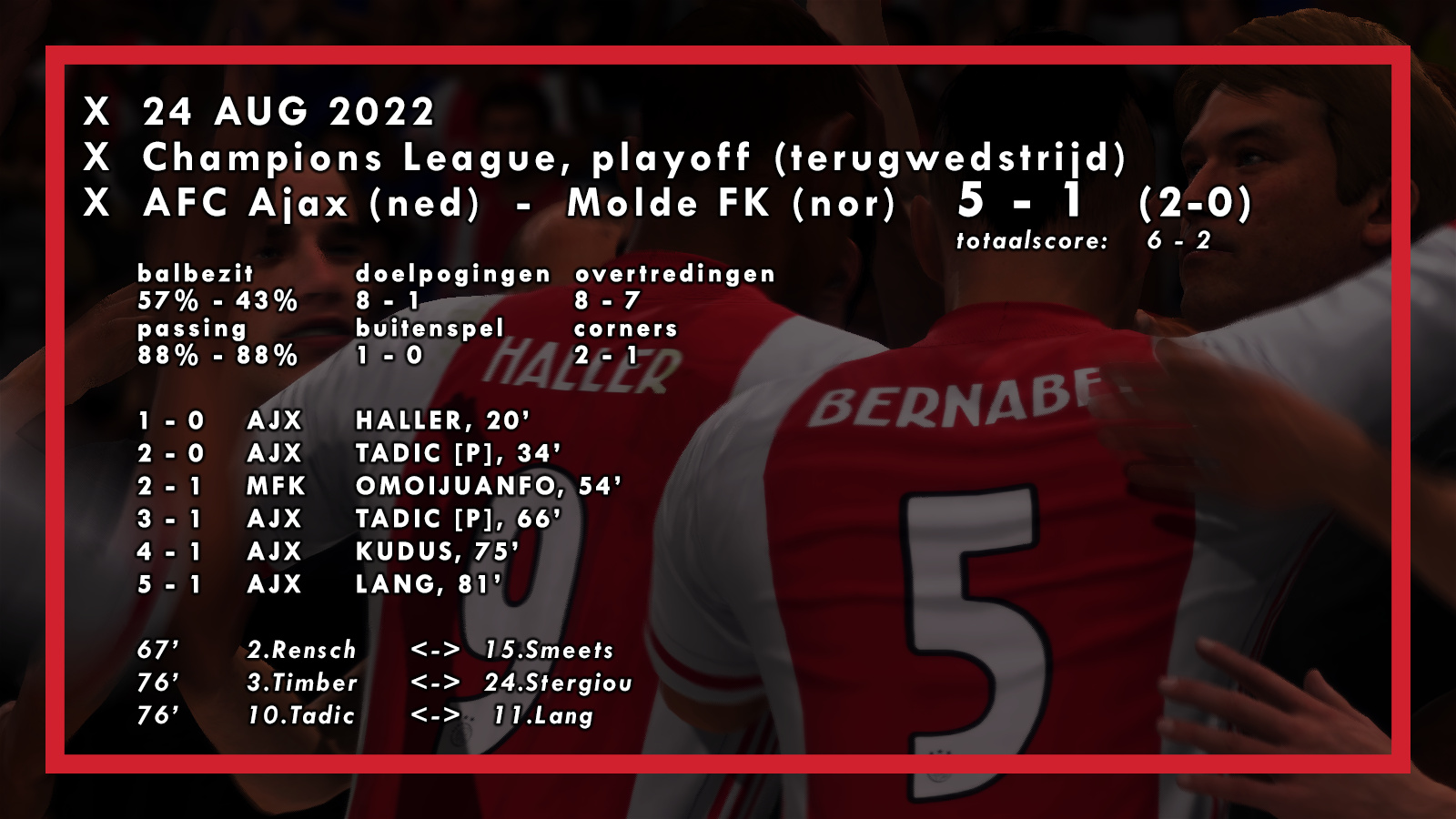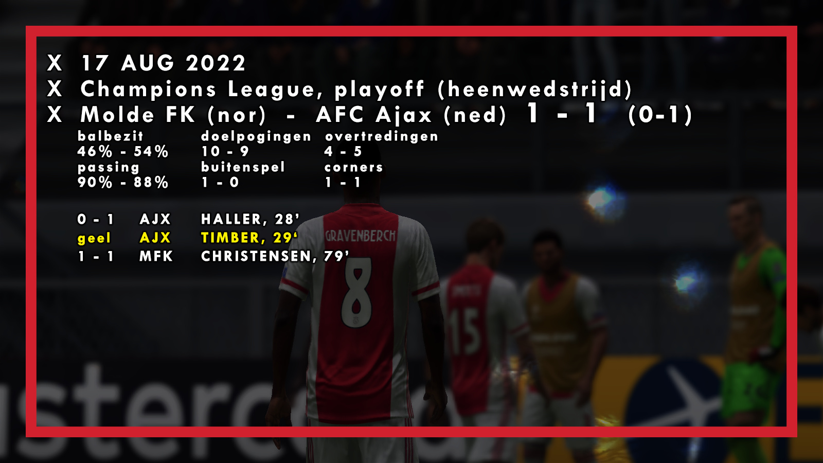 Prima start! Ook de verdediging staat als een huis zo te zien, nog geen enkele tegenviel geïncasseerd! Succes in het tweeluik tegen Molde!