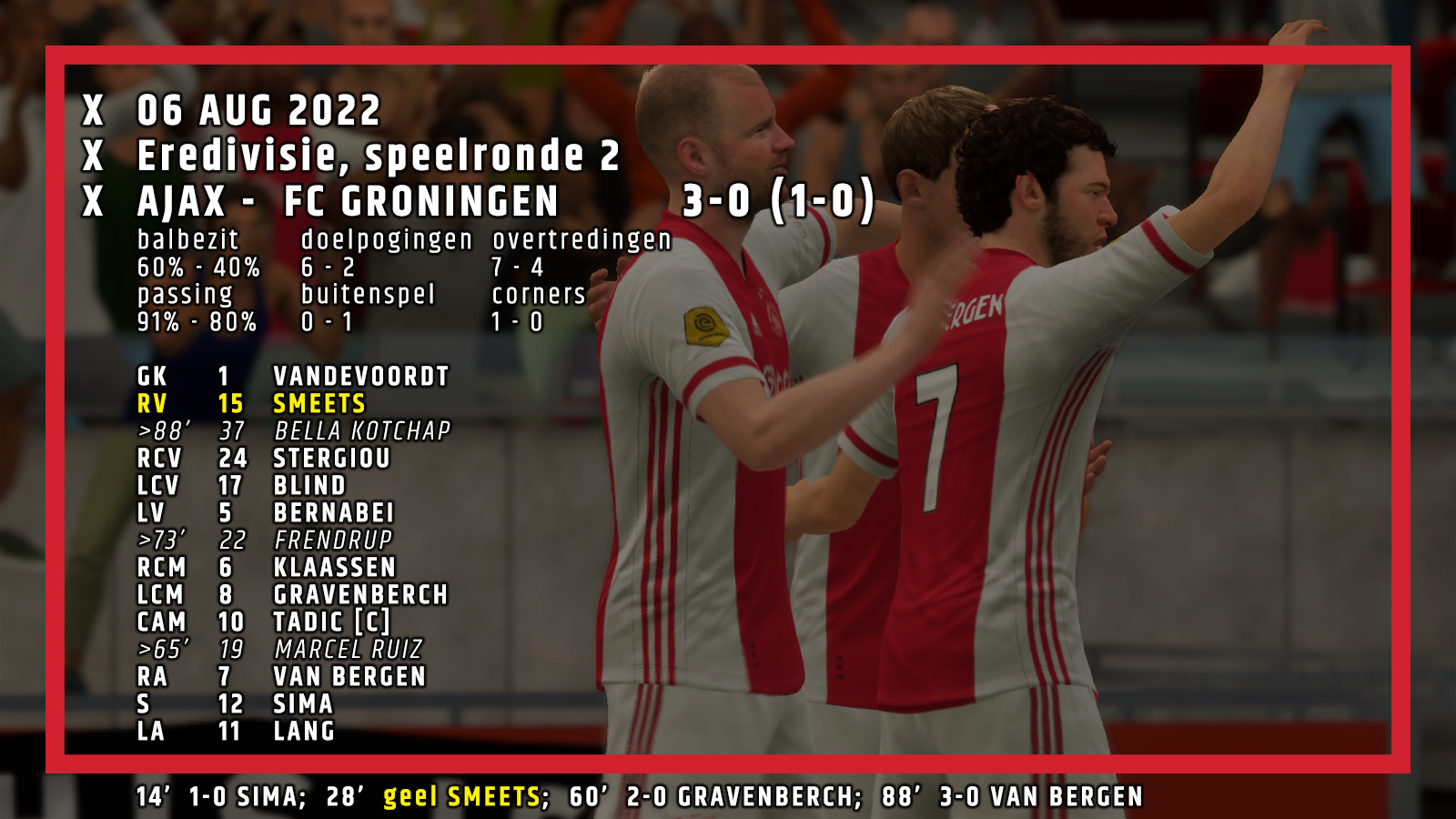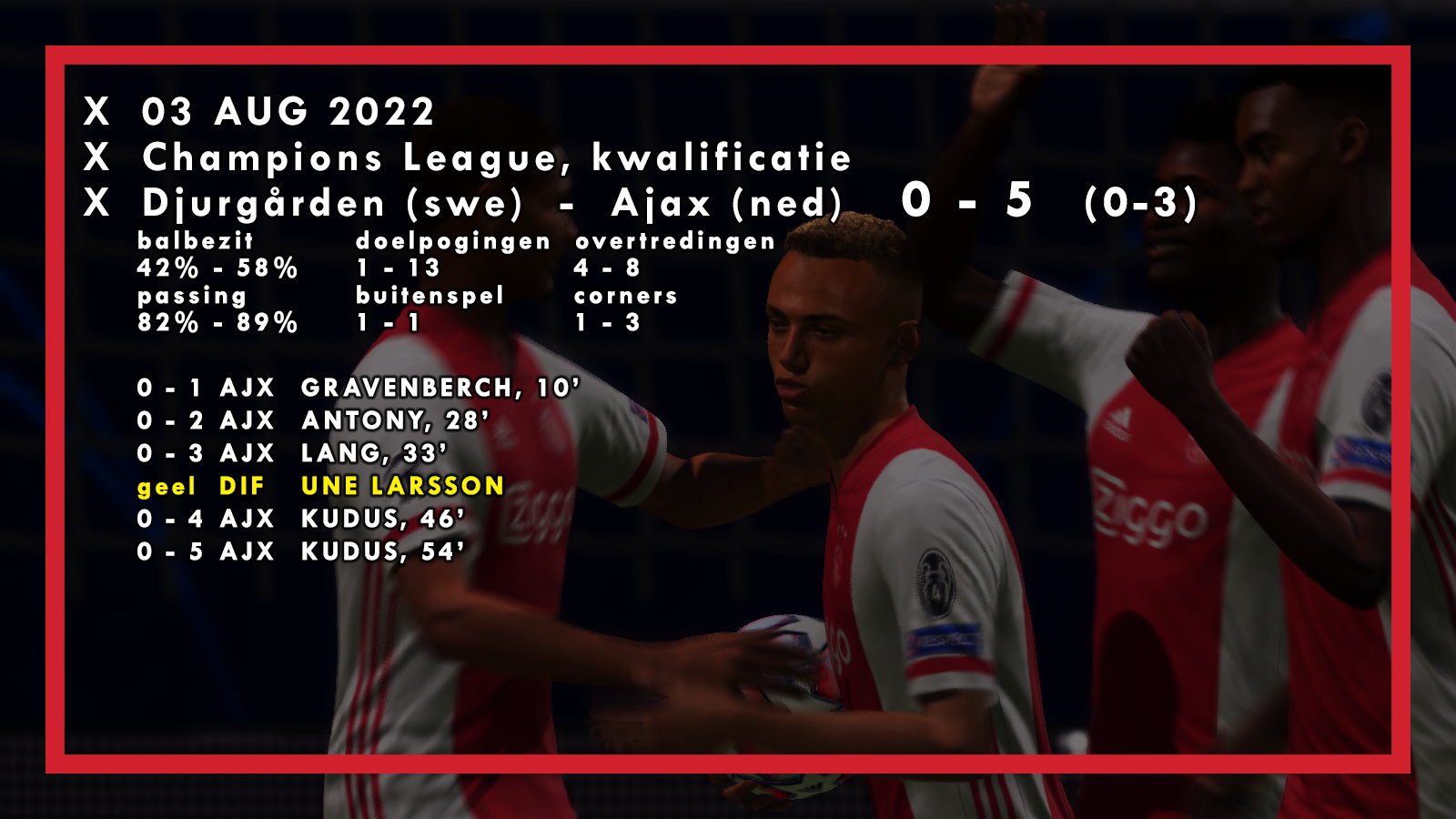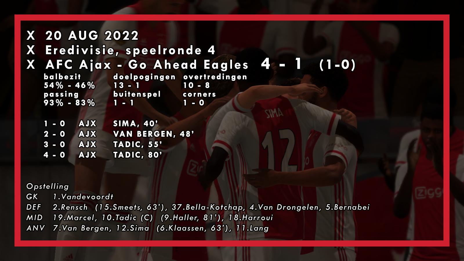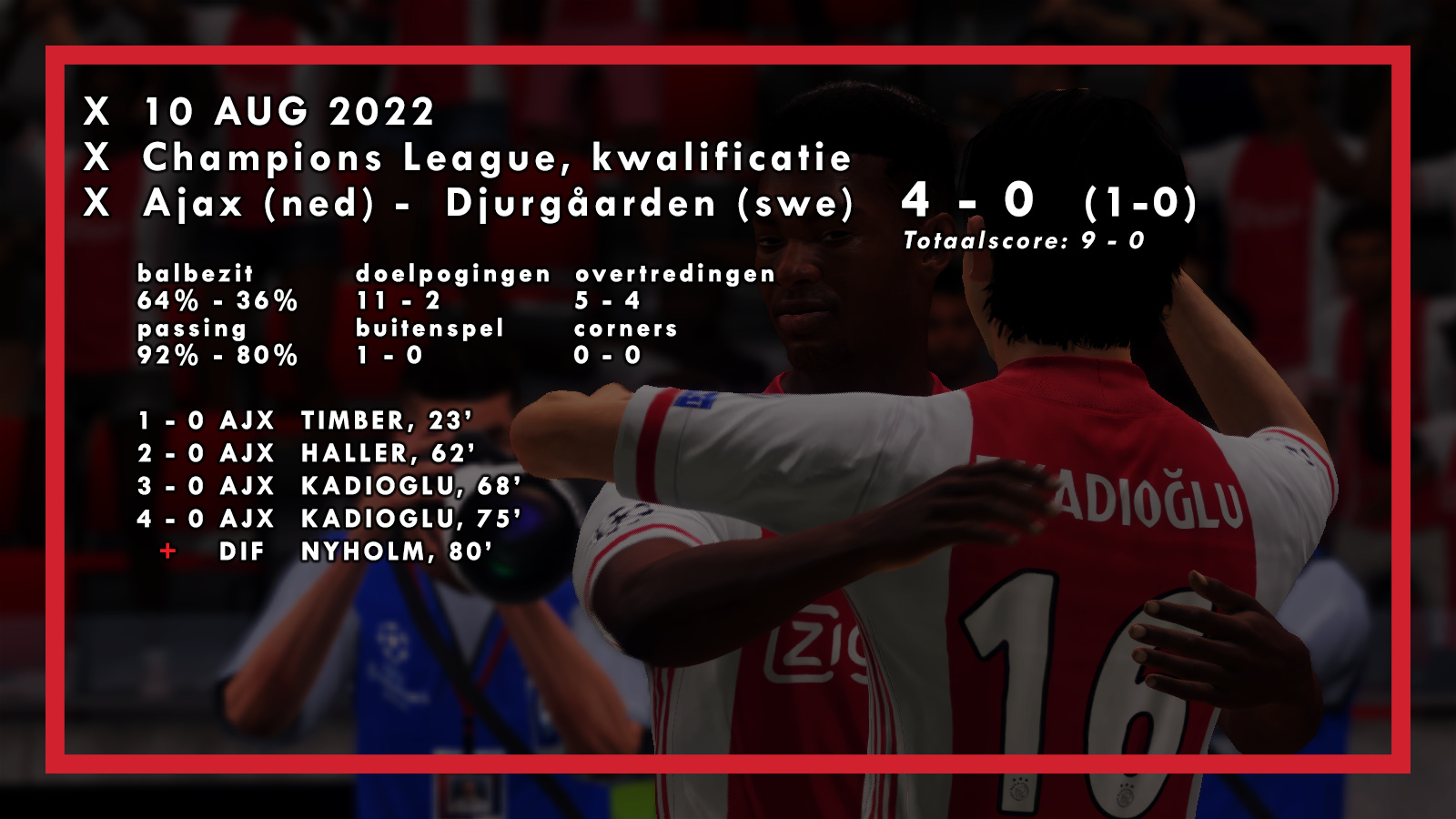 Prima start! Ook de verdediging staat als een huis zo te zien, nog geen enkele tegenviel geïncasseerd! Succes in het tweeluik tegen Molde!