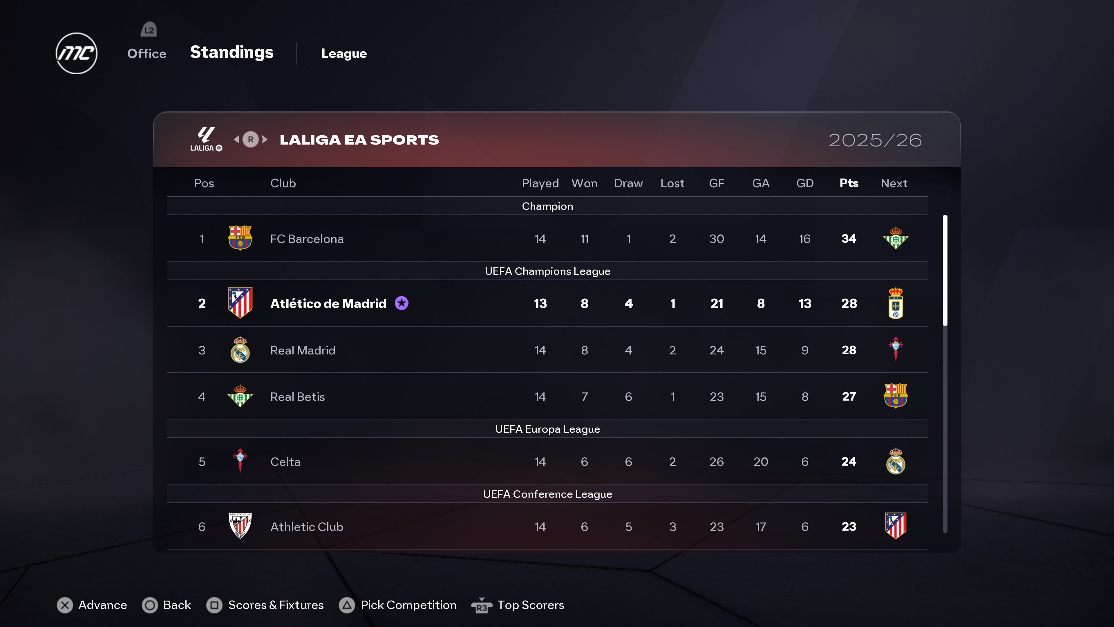Na veertien speeldagen werd de kloof met wat eerst een ongenaakbaar Barcelona bleek te zijn, teruggebracht tot drie punten!