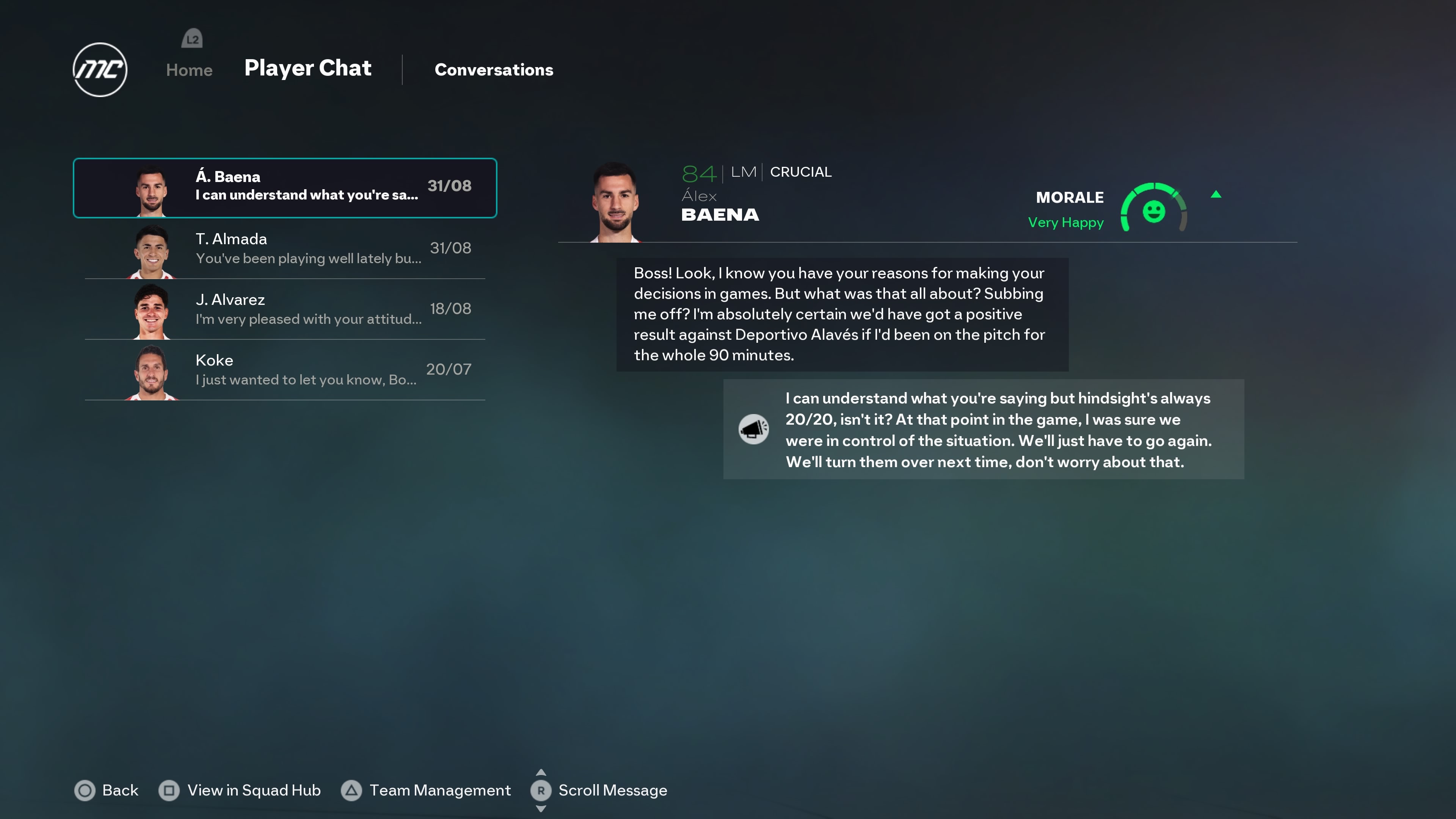 Na de wedstrijd ventileerde Álex Baena zijn ongenoegen over zijn vroege wissel. Een nieuwigheid waar Torres als hoofdcoach meer me zal te maken hebben, al gaf El Niño op een rustige manier weerwoord om zijn keuze te verantwoorden.