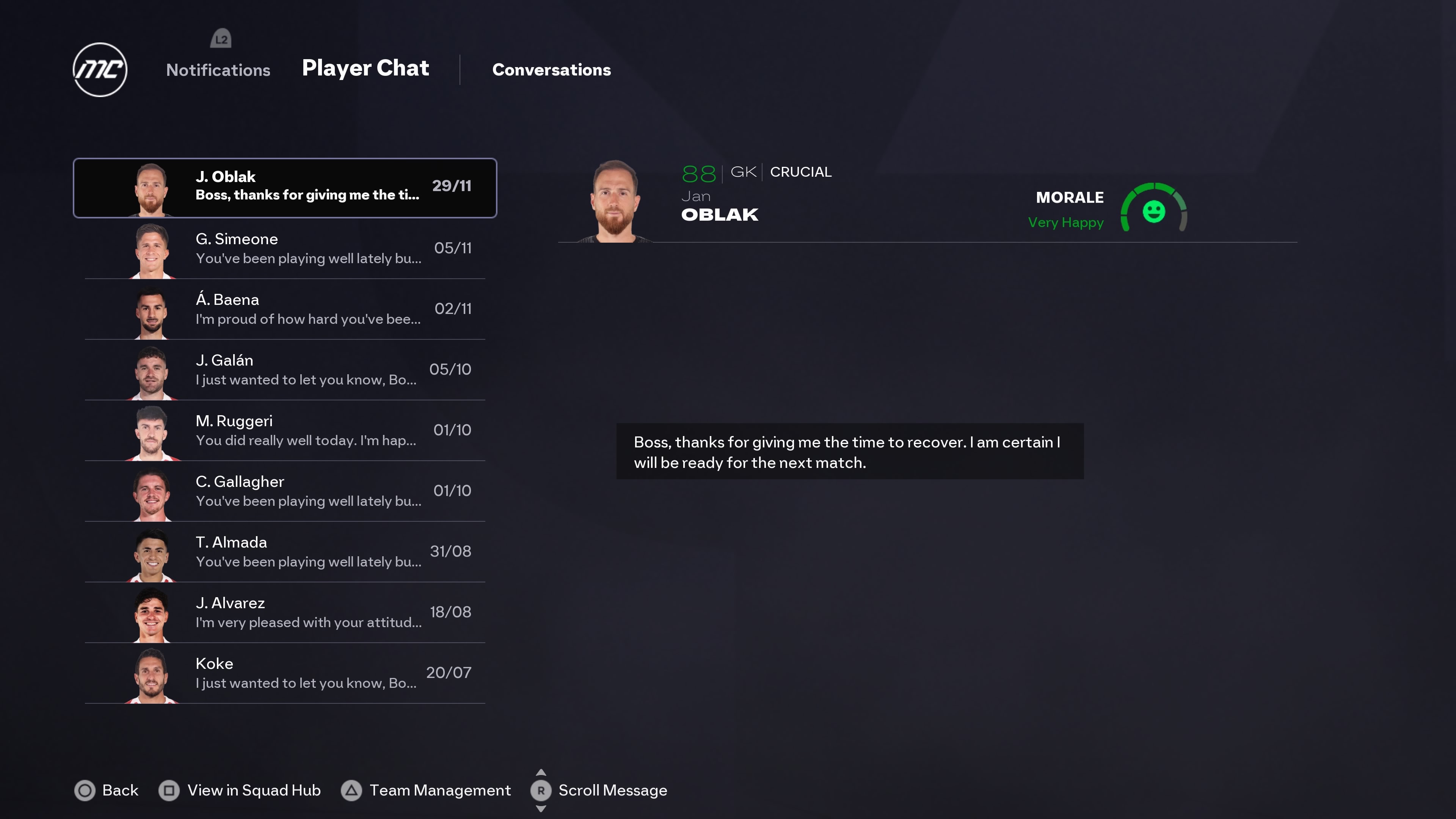 Een dag later gaf Oblak aan zichzelf weer veel beter te voelen en klaar te zijn voor onze volgende wedstrijd.