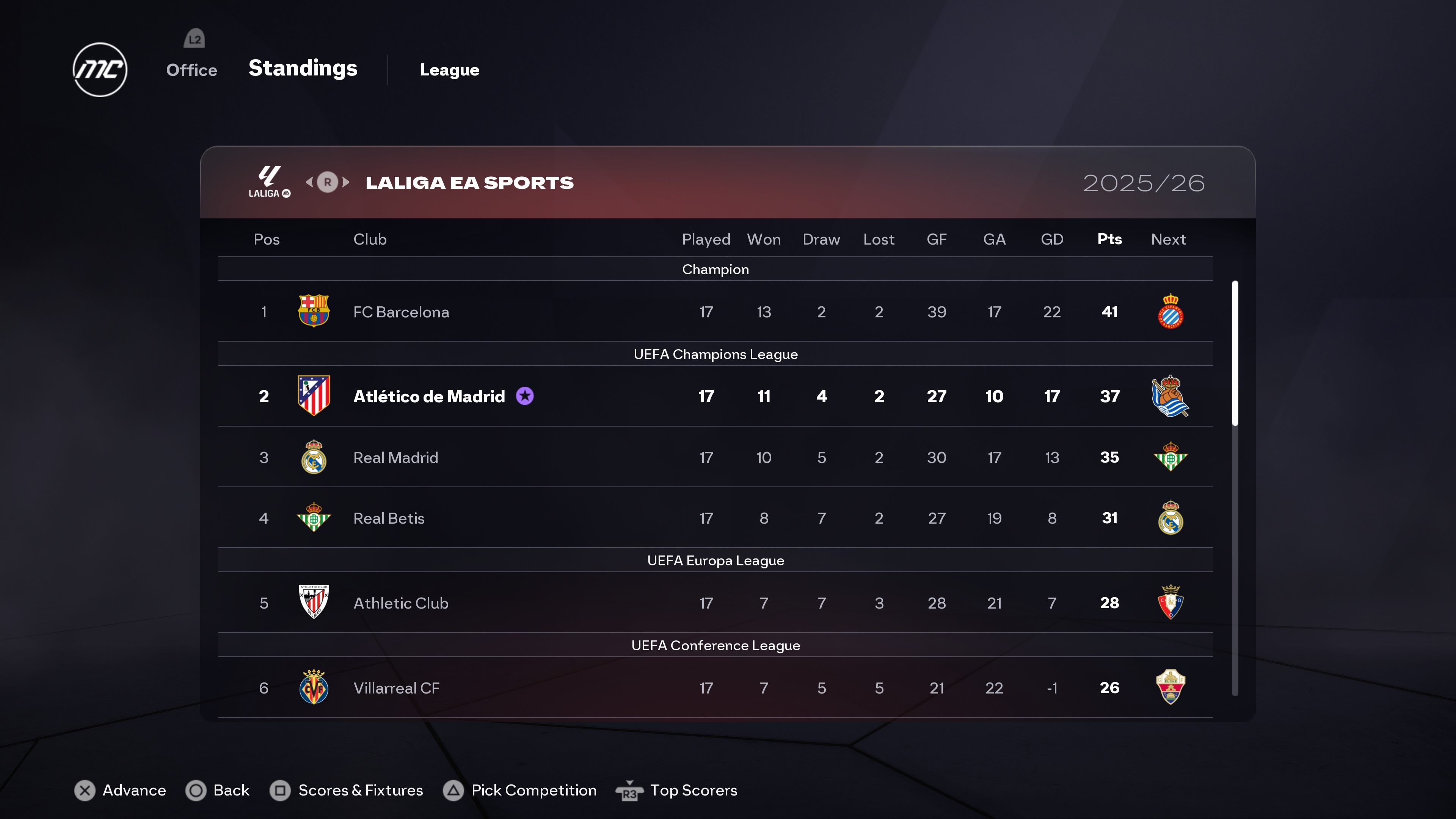 In LaLiga konden we de kloof met leider Barcelona verkleinen tot vier punten, wat het kampioenschap terug interessant maakt, want de Catalaanse titelconcurrent begon ongelooflijk sterk en leek bij het competitiebegin onklopbaar.
