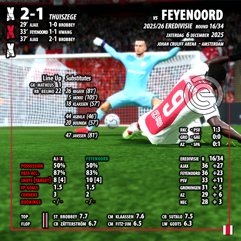 Vooraf aan de wedstrijd sprak de internationale media veel over wat Brian Brobbey zou doen: de spits scoorde tweemaal tegen Leverkusen en afgelopen weekend schreef de spits een hattrick op zijn naam tegen Sparta. Daniel Marzec kondigde echter aan dat zijn spits tegen Salzburg in een meer dienende rol zou spelen: ‘Want, ook dát kan hij’, aldus de trainer.