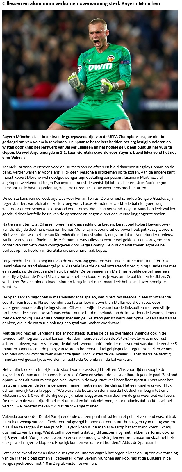 Leuk om ondertussen ook eens de selectie van Valencia te zien. Veel succes met de rest van het seizoen. Hopelijk mooie resultaten in de Champions League ook.
