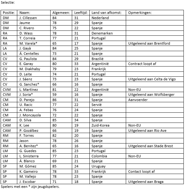 Odriozola was een mooie toevoeging voor je selectie geweest, jammer dat je ook Soler nog kwijt raakt. Leite in het centrum lijkt mij ook een gokje, al geef je al wel aan dat hij het in de voorbereiding erg goed deed. Je selectie ziet er prima uit, hiermee moet je wel weer voor een plek in de top vier kunnen gaan.