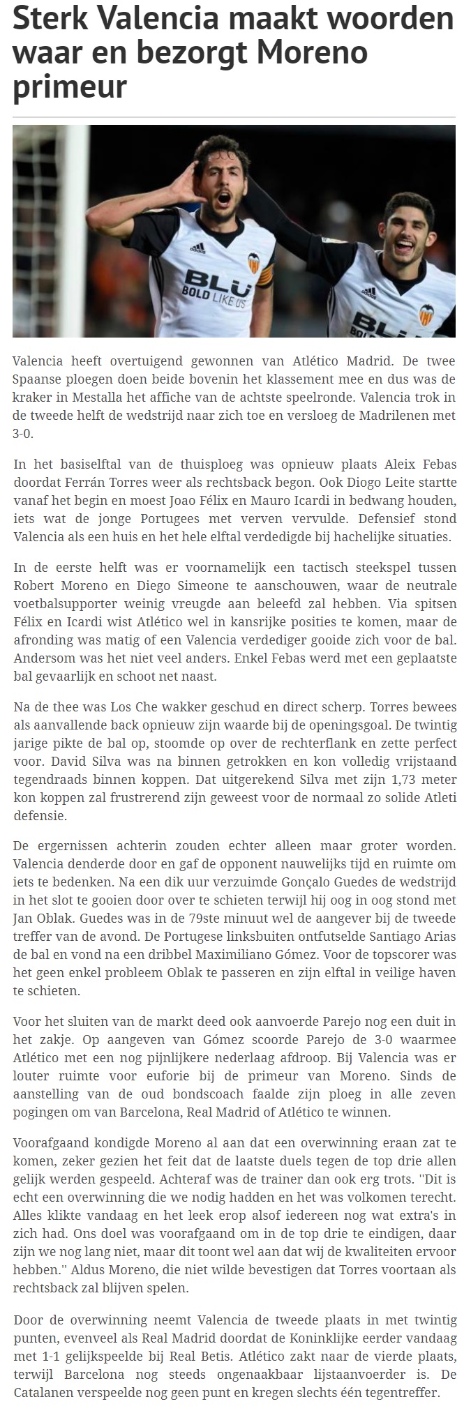 Geweldige overwinning tegen Atlético. Leuk dat Parejo en Gómez ook weer belangrijk zijn, net als Torres en Silva. Wel jammer het gelijke spel tegen Dinamo, had meer ingezeten denk ik.