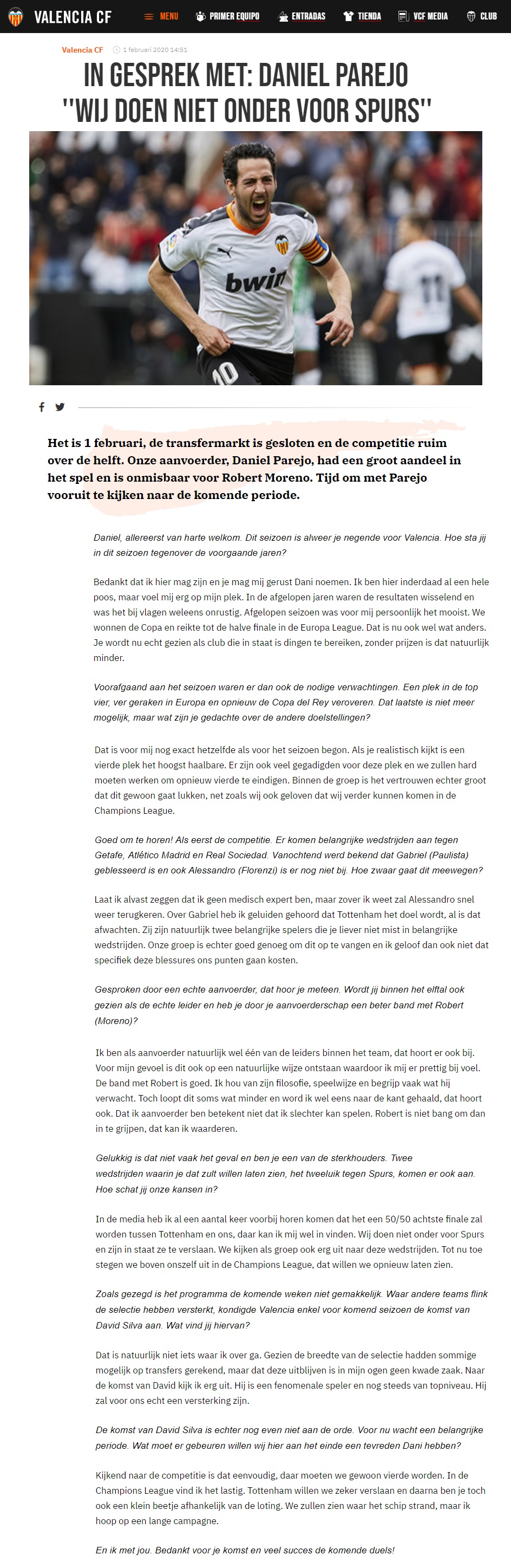 Leuk interview met Parejo. Verder lijken mij de spelers die vertrekken geen groot gemis. Je hebt er ook redelijk wat geld voor kunnen vangen dus lijkt mij een mooie zaak zo.