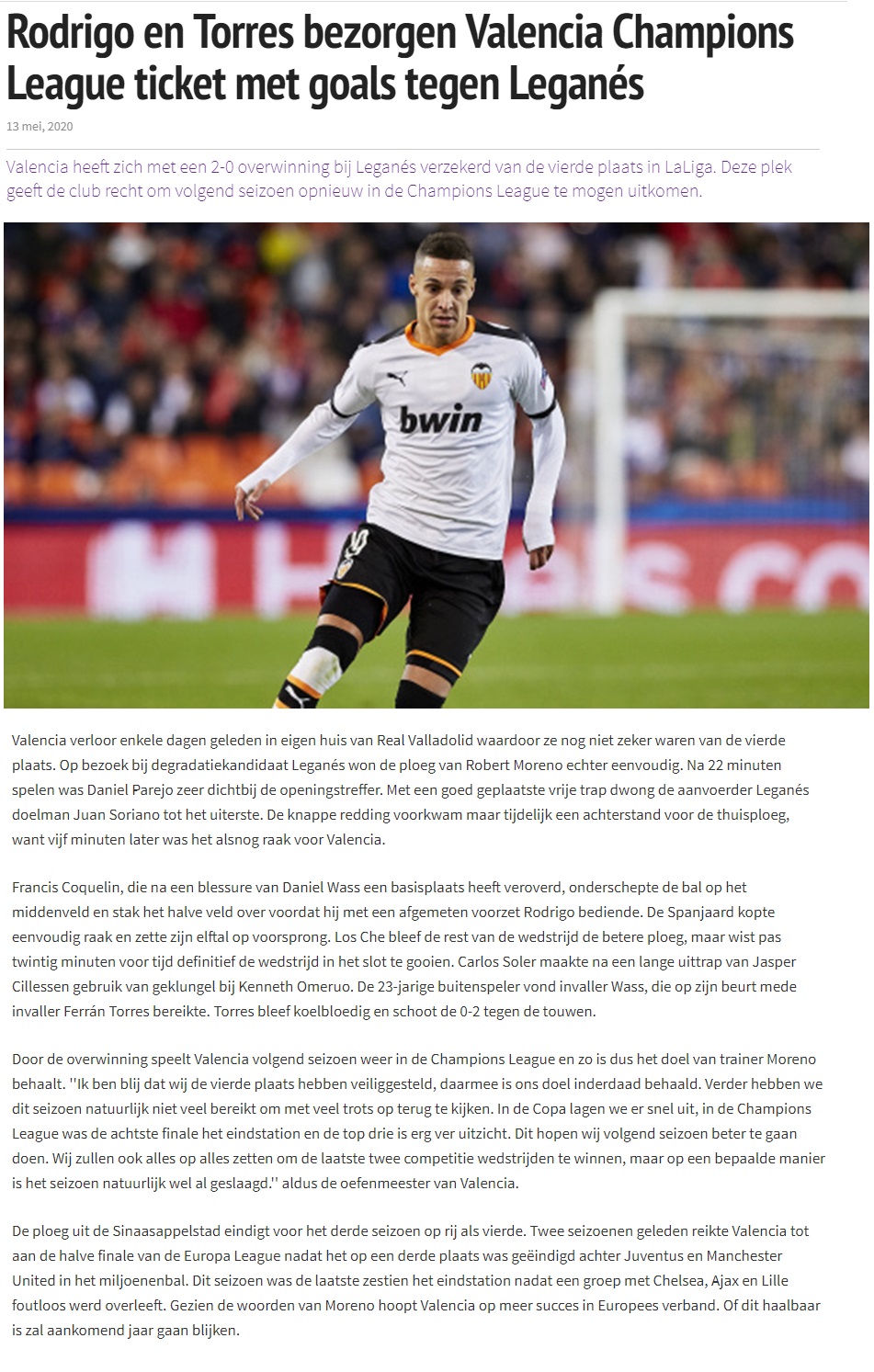 Belangrijke overwinning en een zeer sterke wedstrijd. De 1-0 voorsprong was verdiend en de gelijkmaker kwam uit de lucht vallen. We waren vele malen sterker en dankzij een weergaloze Parejo, die naast zijn goal twee keer de lat raakt, wonnen we uiteindelijk met 2-1.